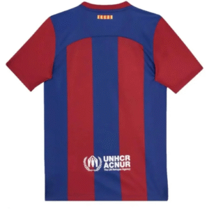 The Barcelona Hello Kitty jersey is a vibrant and playful addition to any football fan’s wardrobe. Combining the iconic colors of FC Barcelona with the cute and universally adored Hello Kitty character, this jersey stands out with its unique design. The vibrant blue and deep red stripes are complemented by a stylized Hello Kitty motif, bringing a sense of fun to the traditional Barca look. Made from high-quality, breathable fabric, it ensures comfort during wear, whether at a game or for casual outings. This jersey captures the spirit of both FC Barcelona’s dedication to excellence and Hello Kitty’s charm, making it a collector’s item for fans of both brands.