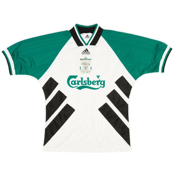 From its split design to its central crest, the 1993–95 Liverpool away shirt is a true statement piece and a must-have for collectors and fans of the vibrant Premier League era.