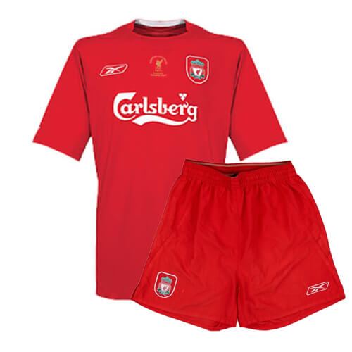 The Retro Liverpool Home UCL Winners Kids Kit 2004–05 is a junior-sized version of one of the most iconic kits in European football history. Worn during the unforgettable Champions League final in Istanbul, this Reebok-designed red kit became legendary as Liverpool came from 3–0 down to draw level and beat AC Milan on penalties in one of the greatest comebacks the sport has ever seen.